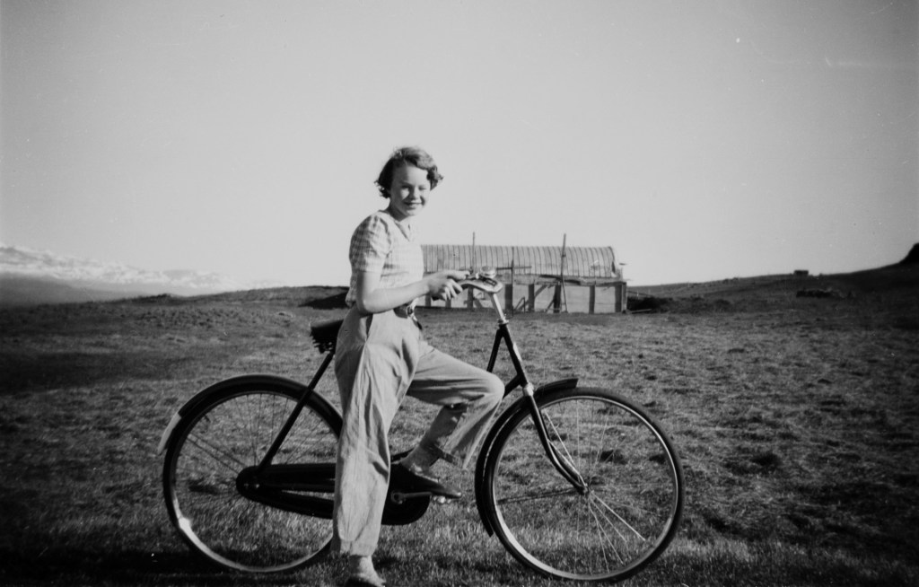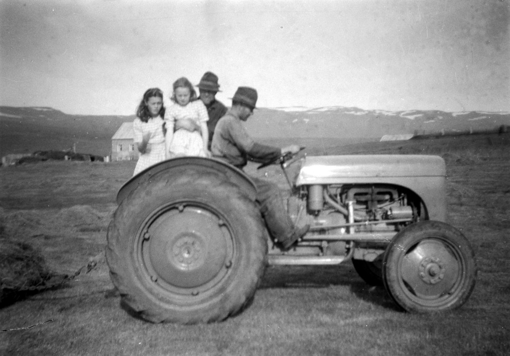 Hulla, Dísa, Bjössi og Skúli á gamla Ferguson.Signý Stefánsdóttir systir Vilborgar sem dó úr sorg eftir að hafa misst son sinn í Jöklu á Stekkjarnesi.Svandís á reiðhjólinu sem hún fékk í fermingargjöf. Fjárhúshlaðan í baksýn.
